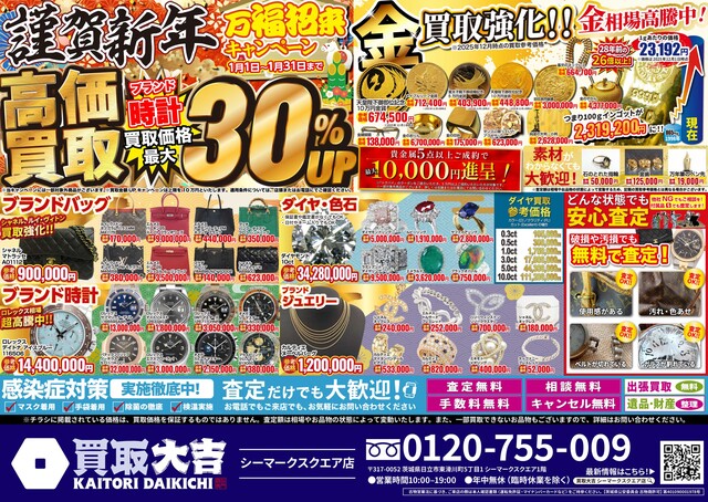 買取大吉シーマークスクエア店のHPをご覧頂き誠にありがとうございます。
