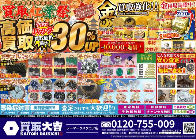 買取大吉シーマークスクエア店では、毎日元気にスタッフ一同で皆様の御来店をお待ちしております。